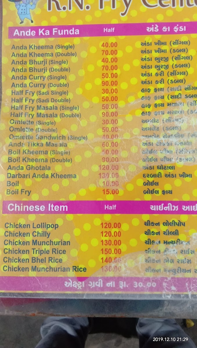 The menu at RN Fry Centre offers a straightforward, no-frills selection typical of a roadside eatery known for its hearty, flavorful non-vegetarian dishes. You’ll find familiar favorites like Mutton Handi, Chicken Bhel Rice, and Chicken Tandoor that suit a casual, relaxed dining experience. The range covers a variety of rotis and naans, alongside an assortment of egg-based preparations under their “Ande Ka Funda” section, making it easy to find something for any time of day.